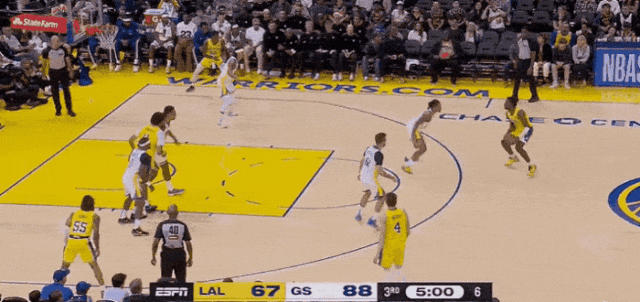 霍福德瞅准时机,妙传弯道漂移切入的库里,一个电线杆过弯拉杆反篮打成2+1