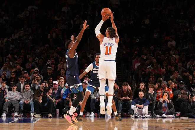 尼克斯:唐斯10分11篮板,布伦森14中4得到11分,布里奇斯3记三分15分,麦克布莱德10分,克拉克森10分。