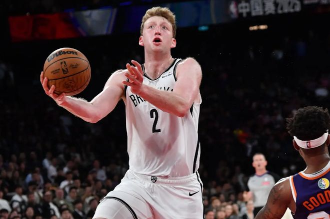 在此前的NBA夏季联赛中,沃尔夫总共出场3次,场均出场时间达到了24.7分钟,场均数据为10分7.3篮板2.7助攻1抢断2盖帽,还有3.3次失误和3.3次犯规,投篮命中率39.1%,三分命中率40%,罚球命中率66.7%。沃尔夫在夏季联赛期间的表现倒还是有些亮点的,但是他的进攻效率其实也并不是非常稳定的,而且他的失误数也是居高不下的水平。我们其实看得出来,篮网想要练习沃尔夫的控球技能,并且想要复刻密歇根大学的双塔高低位打法,这也是他们在比赛尾声阶段一直让沃尔夫和德鲁-蒂米(Drew Timme)一直留在场上的重要因素。然而这是NBA赛场,并不是NCAA赛场,比赛的节奏存在着完全的不同。沃尔夫这个速率的球员打控卫,真的合适吗?