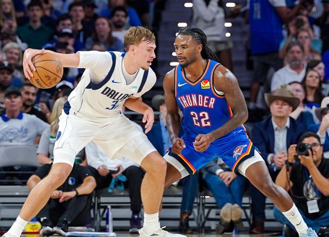 包括第三梯队的独行侠、马刺、灰熊等球队,大前提是保持健康状态。独行侠在上赛季送走东契奇后,联盟“补偿”性质的让他们抽到了状元签,弗拉格被寄予厚望,夏联弗拉格打了两场比赛,场均20.5分5篮板2.5助攻1.5抢断,没有明显短板,而且有不错的进攻发起能力。季前赛的两场比赛,弗拉格合计打了38分钟,拿到21分9篮板7助攻3抢断,个人综合实力确实很强。如果再算上欧文在赛季中段回归,独行侠纸面上有实力去冲击季后赛门票。但问题的关键在浓眉这里,湖人不让他打四号位,是有原因的。