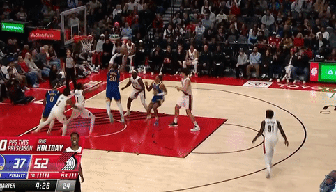 第四节开拓者克里斯-穆雷拿下4分,勇士帕特-斯宾塞拿下7分,最终开拓者111-118不敌勇士