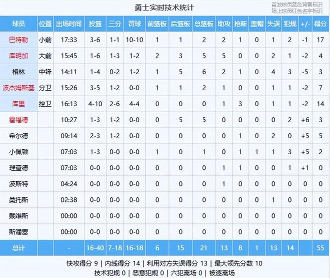揭幕战重头戏!勇士55-54湖人,看数据:头号功臣是他!