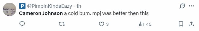 卡梅伦-约翰逊是掘金今夏用小波特+1个首轮签从篮网换来的,都说他是一个顶级的3D锋线,可他季前赛场均20.6分钟,拿到8.2分2.6篮板1.4助攻1抢断,命中率39.4%,三分命中率30.4%。