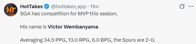 美媒HT:本赛季可以跟SGA抢常规赛MVP的球员他叫做文班亚马。