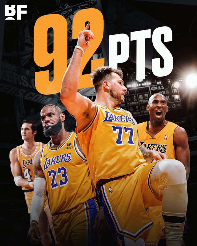 在前两场比赛中,东契奇场均能得到46.0分、11.5个篮板与8.5次助攻,这一开局两场的总得分创下了湖人队史纪录。