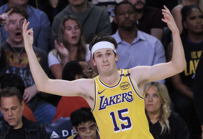 原来联盟里真不是只有亚历山大一个人能罚,里夫斯更夸张,比赛当中甚至连解说都非常无语的表示:“湖人的罚球真给国王发晕了。”因为国王队全队才11个罚球,而且关键在于这比赛还是国王的主场。