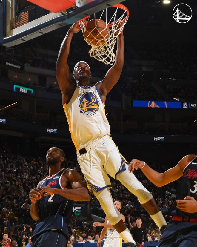 这场比赛是勇士背靠背的第二场,他们在昨夜刚刚以四人20+大胜灰熊,库里仅打29分钟消耗很小,所以勇士保留了体能来打快船,而快船的主力10人平均年龄到达33.1岁,所以他们的体能也不佳,开场勇士就用各种防守反击拖垮快船,库明加首节就拿到7分,库里首节也是7分。