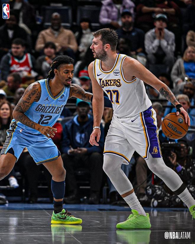 本场比赛,湖人后场双核依旧靠谱,伤愈复出的东契奇全场出战38分钟,27投14中,其中三分球15投6中,罚球13投10中,得到44分12篮板6助攻。根据数据统计,东契奇本赛季开局前3场都砍下40+,场均拿到45.3分,湖人队史上一个在出战的连续三场比赛中拿到45+分还要追溯到2007年的科比。
