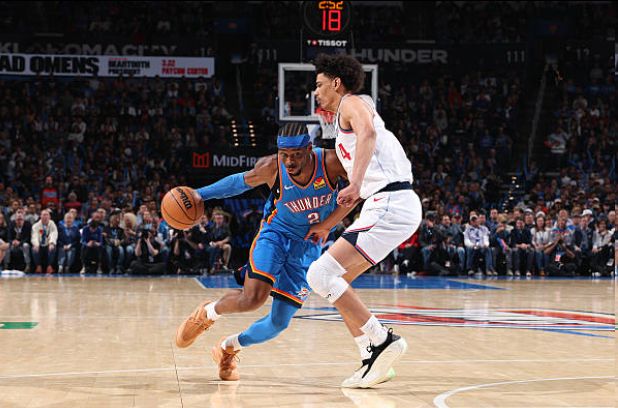 第七,快船首节领先雷霆6分,次节被雷霆反超9分,三节结束落后20+,次节快速投降,最终输球。