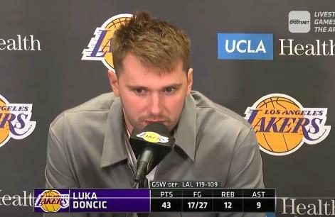 北京时间今日,在NBA新赛季常规赛揭幕战中,湖人队在主场以109-119不敌勇士队,湖人球星东契奇空砍43分12篮板9助攻的准三双数据。赛后,东契奇接受了媒体采访。