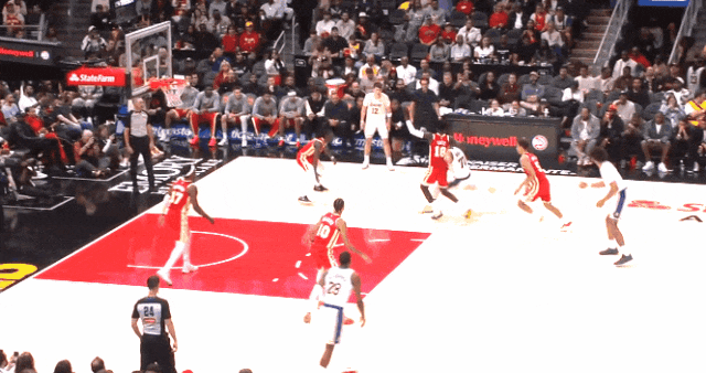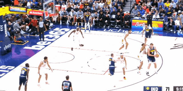 一个华莱士传球,斯玛特扑盖耶的三分,盖耶直接突破抛射。