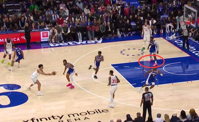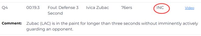 第二次漏判,发生在距离比赛结束还有19.3秒,快船的祖巴茨在没有积极防守对方球员的情况下在己方禁区停留时间超过3秒,这也是一次漏吹的防守三秒违例,快船获利,76人吃亏。