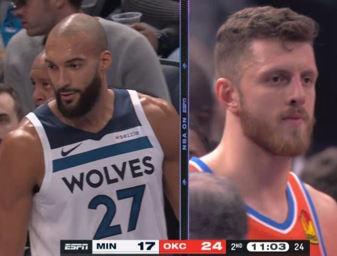 戈贝尔击中哈尔滕施泰因面部吃T,森林狼挑战成功改吹哈尔滕施泰因犯规,但戈贝尔技术犯规保留。