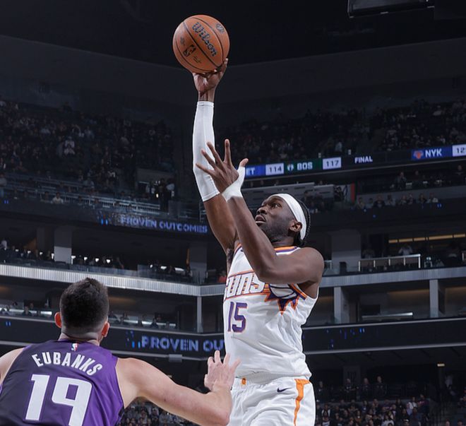 国王主场迎战太阳,国王缺少了小萨,太阳缺少了杰伦格林、阿伦、邓恩,太阳战力折损更大,太阳首节领先25分,随后的三节比赛国王都在苦苦追分,最终太阳以12分优势拿下比赛。马威12中9得到21分16板4助3断,吉莱斯皮15中8得到21分3板9助2断,国王方面威少13中8得到19分8板3助,穆雷16中7得到19分8板3助2断。