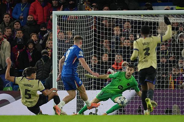 欧冠:阿劳霍染红 切尔西3比0巴塞罗那