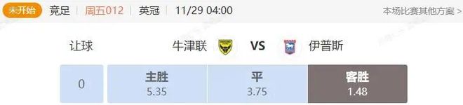 竞足 周五012 英冠 牛津联VS伊普斯